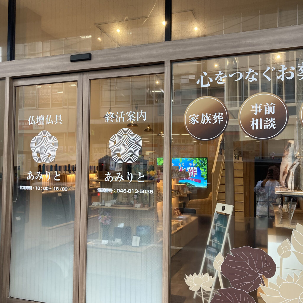 一般社団法人かながわ終活サポートセンターは、逗子市にある仏具店兼終活拠点「佛遠堂あみりと」に事務所を構えています。相談スペースも設けておりますので、お気軽にお越しください。