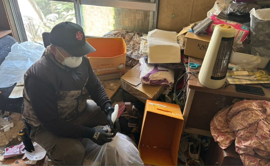 横須賀市を拠点に、逗子・葉山・鎌倉・湘南・横浜エリアで活動しております、遺品整理・特殊清掃 FUSHAの星野と申します。今のこの仕事を始めるきっかけになったのは妻の仕事でした。妻は訪問美容の仕事をしていて、高齢者の方のお宅を回っているんですが、その中でよく聞くのが、「ゴミが出せない」「片付けたいけど体が動かない」「家の中がもうどうにもならない」という声でした。それを少しずつお手伝いしているうちに、私自身が遺品整理の仕事に出会いました。もともとは大手の営業代行会社で働いていたんですが、知人に頼まれて遺品整理のアルバイトを手伝うようになって、「これは人の人生に深く関わる、本当に意味のある仕事だ」と感じて、独立を決意しました。