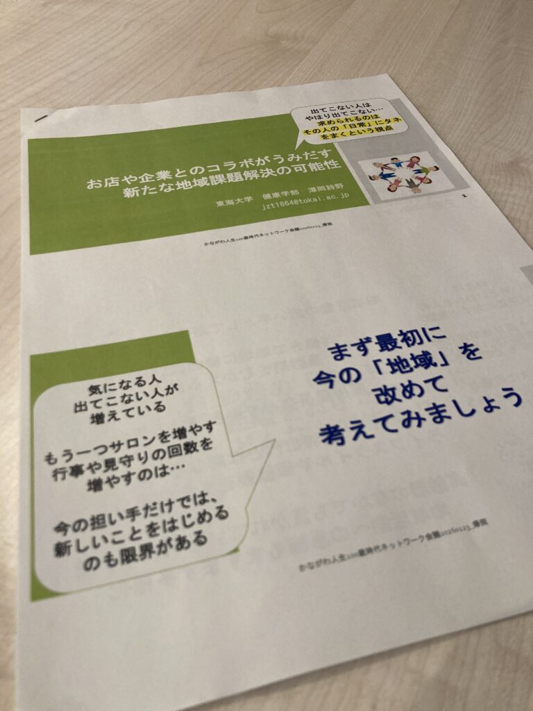 行政や町内会、市民団体等が様々な取り組みをしていても、なかなかそこに参加しない/できない方達は一定数いらっしゃいます。そうした方との接点やつながりを保つ上で、日常生活で必ず使うお店という存在にフォーカスを当て、地域共生の糸口にできるのではないかというお話は非常に勉強になるものでした。実際に、地域の社会福祉協議会とジムやスーパーなどが協力して高齢者を中心とした方達とのつながりを保とうとする取り組みが県内で実施されていることも初めて知りました。いざという時に助けを求められる人をいかに増やすことができるか。事業者の立場から考えていく必要があると強く感じました。